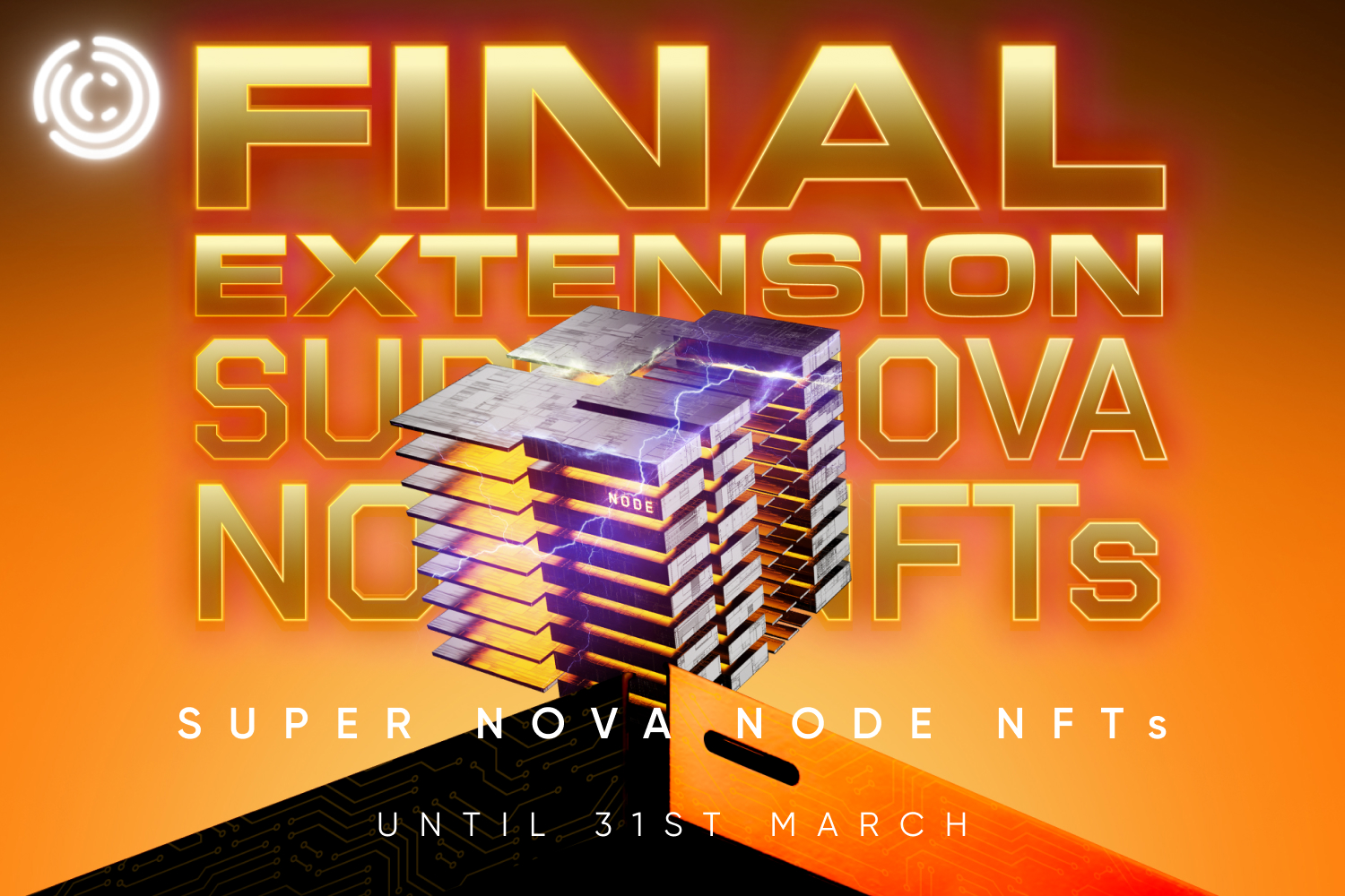 Vzhledem k neuvěřitelnému zájmu a vzrušení dáváme komunitě poslední rozšíření nabídky NFT Supernova Node. Nové datum ukončení prodeje je 31. března. Po další 2 týdny můžete pomáhat zabezpečit ekosystém C Link a získávat za něj dlouhodobé odměny! S Node NFT můžete uzamknout podíly na síťových poplatcích ze všech transakcí provedených v ekosystému C Link. Mějte na paměti, že více než polovina této exkluzivní kolekce NFT je již prodána!