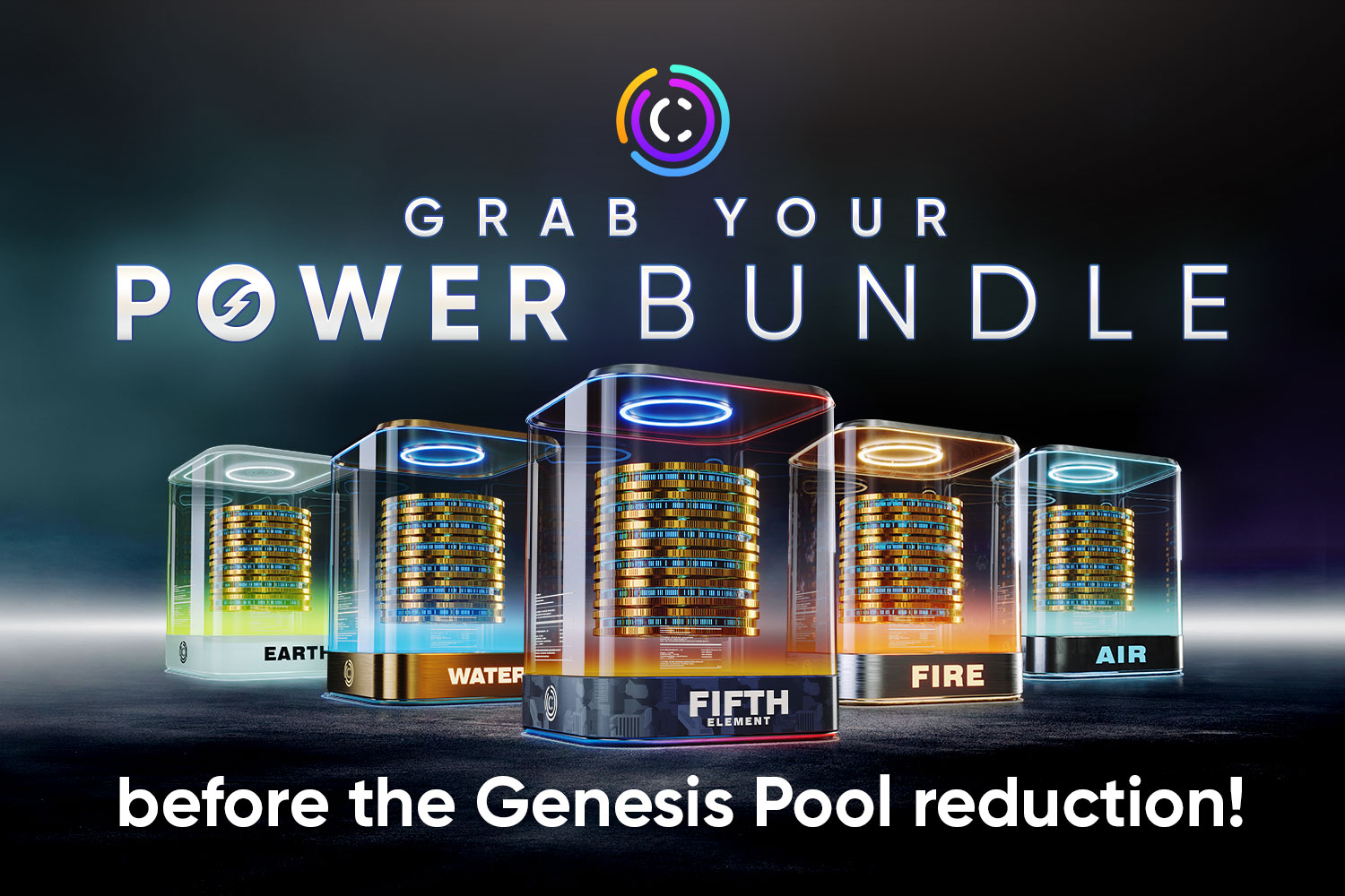 Nezapomeňte na jednu důležitou věc: 2. dubna od 18:00 hodin středoevropského času končí uvolňování tokenů C1 v rámci Genesis Pool a množství tokenů v jednotlivých startovních balíčcích Elementů bude sníženo. To znamená, že se sníží i vaše výhoda balíčků Power Bundles. Nezapomeňte si proto zakoupit balíčky Power Bundles ještě před snížením, abyste měli jistotu, že stále získáte maximum.