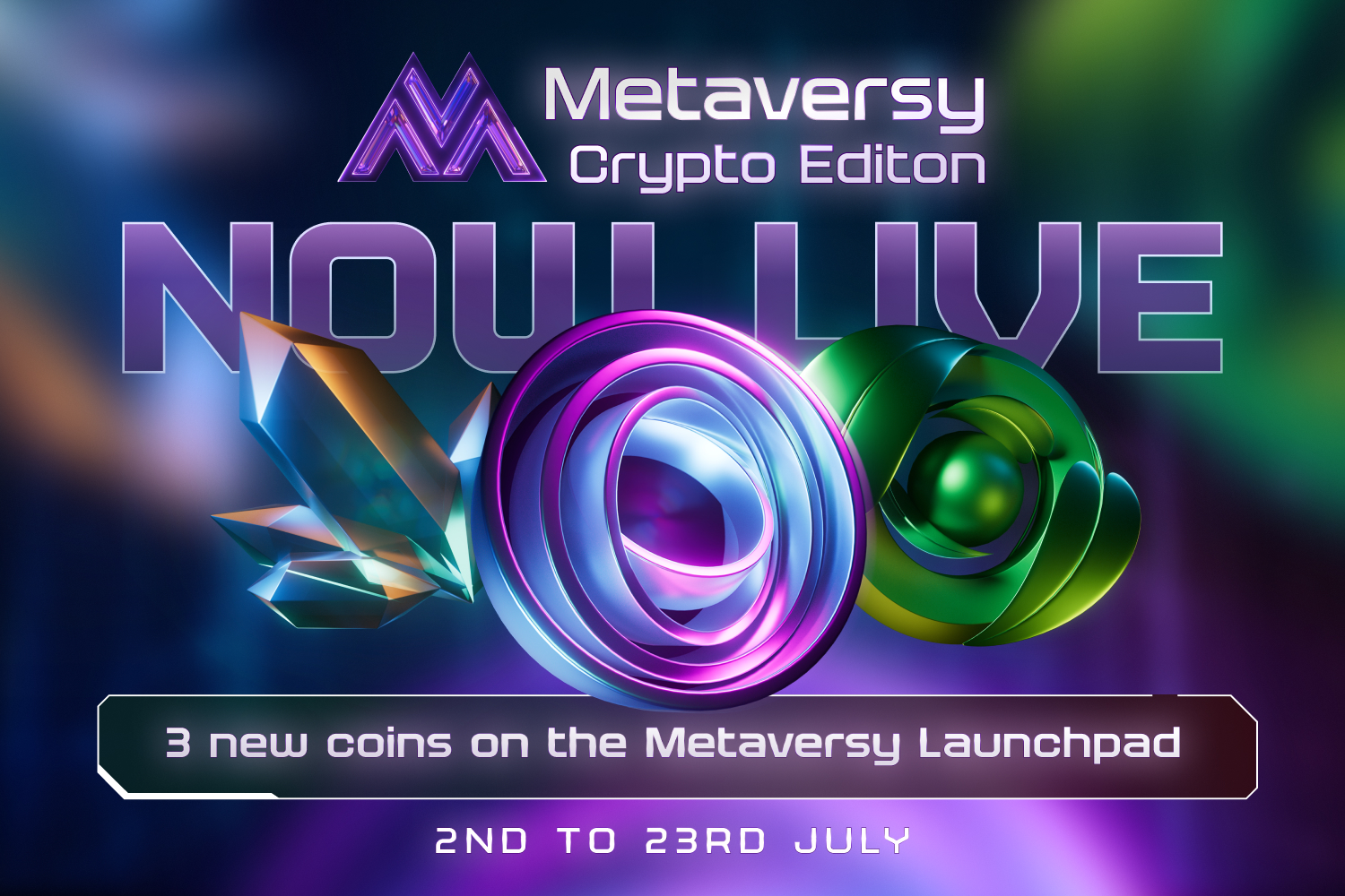 Nové mince dorazily na Metaversy Launchpad! Crystal Dawn (CRD), Gaia Pulse (GAP) a Astral Flow (ASF) jsou zde a představují všem hráčům vzrušující příležitost naskočit na jízdu brzy a využít maximální výhodu! Můžete je získat na Metaversy Launchpad do 23. července, po dobu následujících 3 týdnů, a získat zásadní podporu svého potenciálu obchodování s mincemi na burze Metaversy Coin Exchange. Obchodujte na žebříčku a získávejte ceny USDC s novou sadou mincí, ze kterých můžete využít výhodu.
