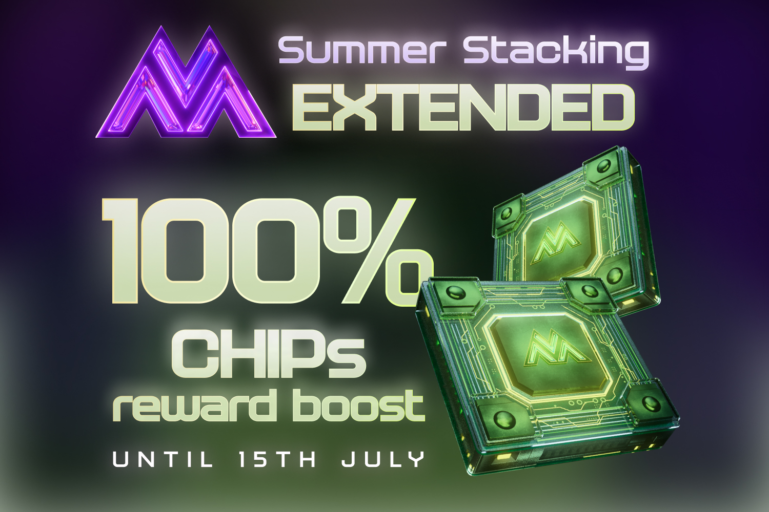 Servery Metaversy jsou v plamenech! Vzhledem k velkému zájmu vám přinášíme rozšíření o balíčky Pro a Elite. Balíčky Metaversy Crypto Edition zůstanou k dispozici ještě 2 týdny. Až do 15. července si můžete zajistit 6měsíční posilovací odměnu ve formě 100% CHIPs za všechny CHIPy získané v Coin Leagues. Zdvojnásobte stohovací sílu s dvojnásobným množstvím žetonů a užijte si šest měsíců s vylepšeným herním potenciálem!