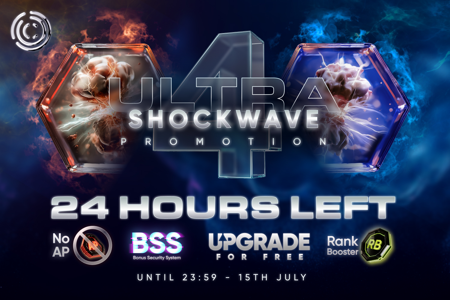 Zítra je poslední den 4. vlny Ultra Shockwave Promotion. Máte pouhých 24 hodin na to, abyste se zmocnili neuvěřitelného bonusu Shockwave Bonus a všech ostatních nástrojů balíčku Ultra Shockwave Pack. Získejte nejoblíbenější nástroje C1: AP, BP, RP, Corebit, Node NFT a výkonný Shockwave Bonus, to vše je letos v létě součástí nejvýkonnějšího balíčku C1. Vyberte si úroveň výkonu s balíčky Lite nebo Pro a rozšiřte svou síť o rychlý růst.