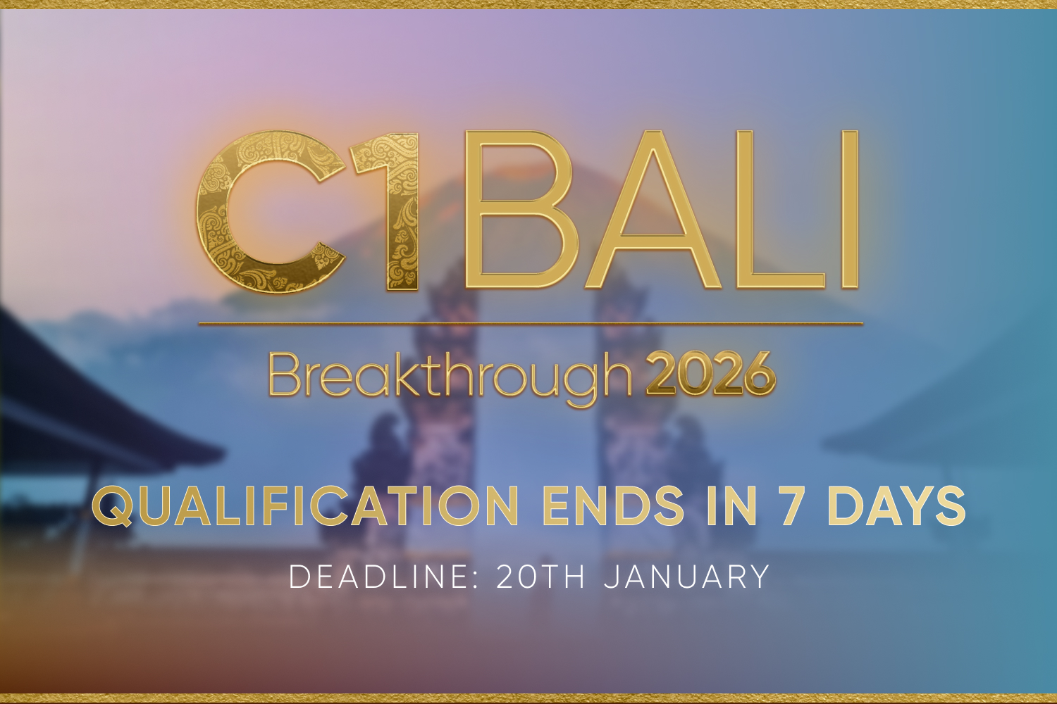 Our Events Team is in overdrive, pouring all their energy into making Bali Breakthrough the most exclusive C1 Incentive Trip to date, a unique experience reserved for those who refuse to slow down at the finish line. In just three days, qualification closes and the opportunity ends. If you’re close, this is your signal to commit fully. Push with intent, lead with confidence, and claim your place among the leaders who turned the final hours into a powerful breakthrough. Bali awaits!