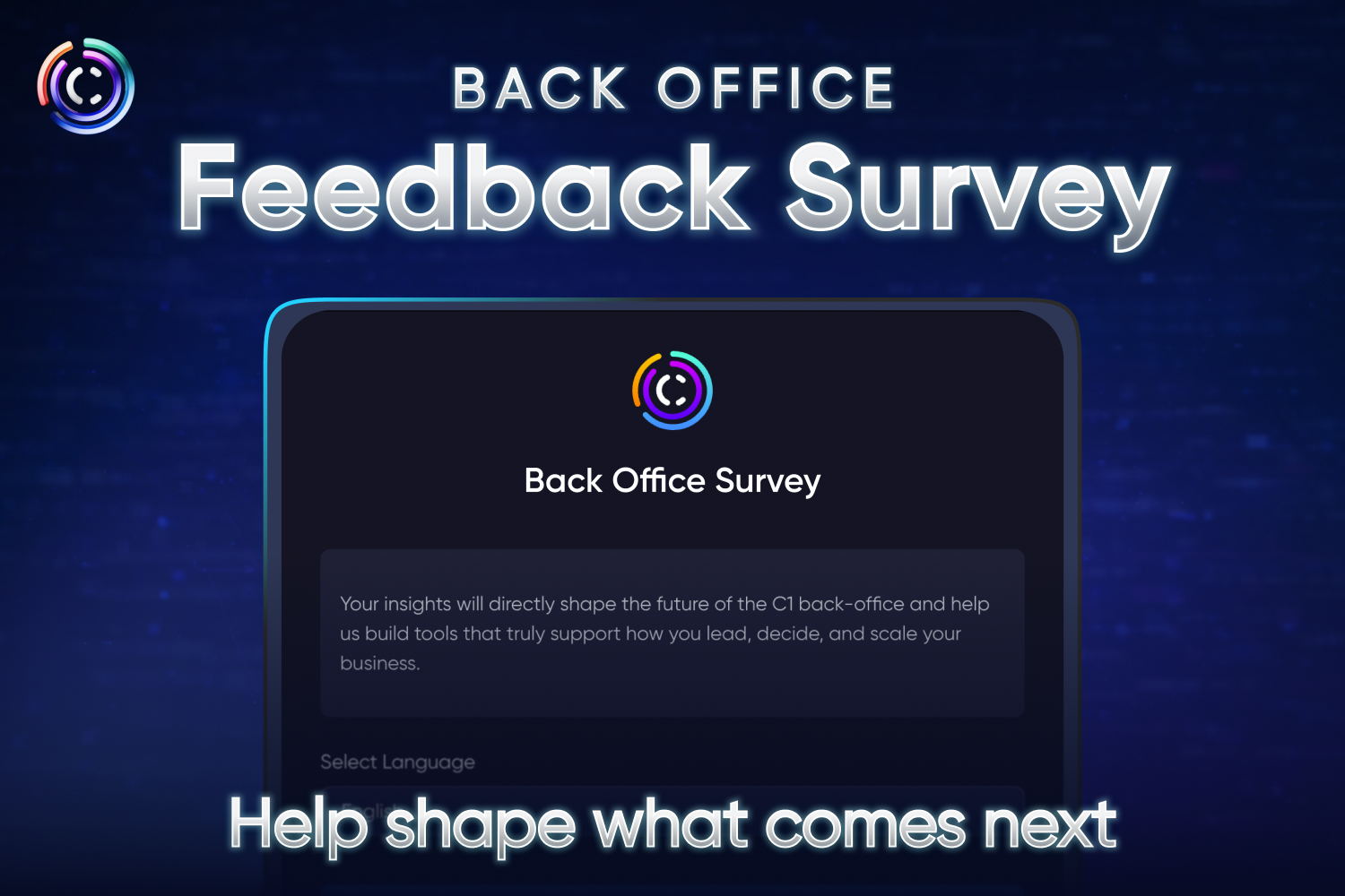 Tohle je vaše šance být součástí tohoto rozhovoru. Krátký anonymní průzkum je nyní dostupný ve vašem Back Office, který vám umožní přímo sdělit, na čem vám nejvíce záleží a kam byste chtěli, aby se C1 zaměřila příště. Dokončení zabere jen pár minut, ale vaše odpovědi hrají důležitou roli při ovlivňování budoucích rozhodnutí a provozních vylepšení C1. Prosím, vyplňte dotazník zde. Účastí pomáháte řídit, jak se C1 vyvíjí, a zajišťujete, že platforma nadále odráží priority, očekávání a ambice své komunity!