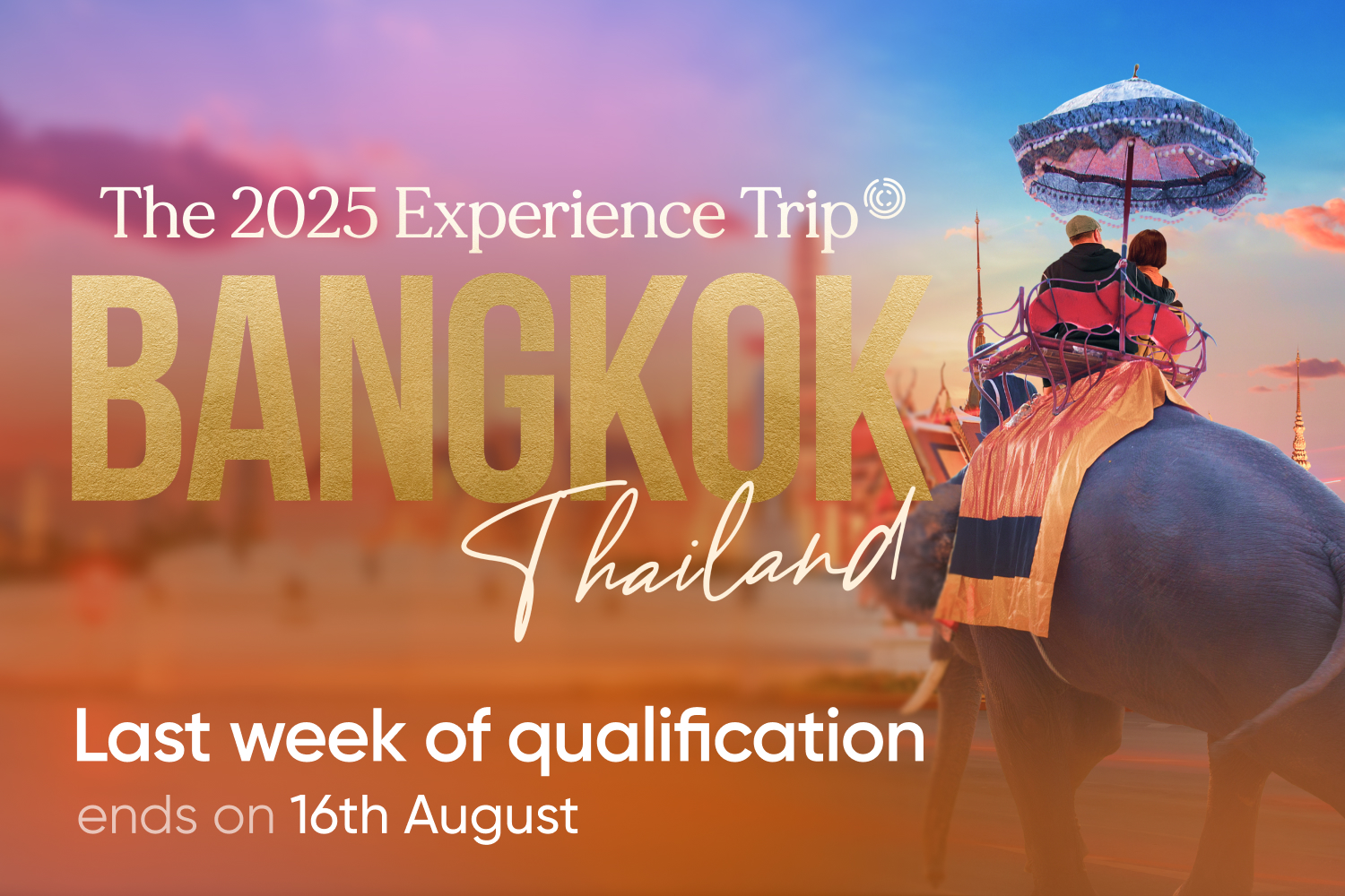Bangkok Experience Trip bude pro naše nejvyšší představitele vysněnou cestou. Stanoví nový standard pro odměny a pobídky C1. Bangkok bude nezapomenutelným zážitkem, větším a odvážnějším než předchozí incentivní výlety. Zasloužíte si oslavit svou tvrdou práci a vedení obklopeni dalšími špičkovými pracovníky, kteří utvářejí budoucnost naší sítě. Těchto několik dní je vaší poslední šancí být jeho součástí. Pojďme společně rozbít rekordy a ujistit se, že vaše jméno bude na tomto seznamu, až se kvalifikace uzavře!