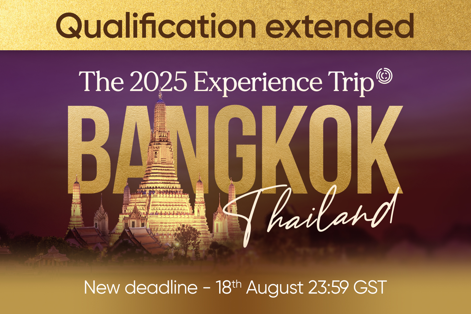 Konec kvalifikace v Bangkoku je tady, ale my vás opravdu chceme vidět na Experience Tripu. Pro velký zájem jsme prodloužili kvalifikaci na zážitkový výlet o 2 dny. Nový termín kvalifikace Experience Trip je 18. srpna ve 23:59 GST. To jsou další 2 dny na to, aby se vaše podnikání pohnulo a zajistilo si tu nejlepší odměnu C1! Bangkok je nádherné město devíti drahokamů a ideální místo pro oslavu úspěchu nejvyšších představitelů C1. Zasloužíte si být u toho, mezi dalšími špičkovými lídry, jejichž úspěch oslavíme v luxusu. Udělejte poslední krok, využijte propagační akce, které jsme vytvořili s ohledem na váš obchodní úspěch a růst, a pojďme překonat rekordy, abychom vás přivedli do Bangkoku!