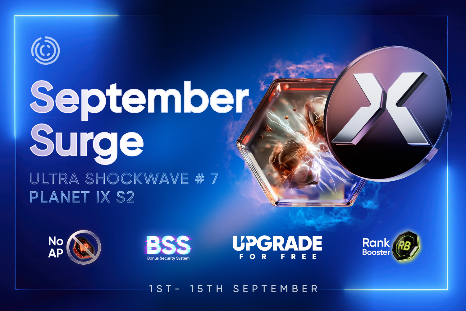 Vykročte do září s nezastavitelným náskokem! Spárujte promo akci Shockwave s předprodejem AIX a získejte ještě větší růstovou sílu. Předprodej na AIX vás připraví na úspěch v Planet IX Season 2 a nabídne vám brzké výhody, které vám poskytnou náskok. Pořiďte si balíčky AIX do 15. září a využijte odměny řízené umělou inteligencí, abyste se posunuli vpřed ve světě Play-2-Earn. Získejte svou výhodu v další úrovni Play-2-Earn aréně!