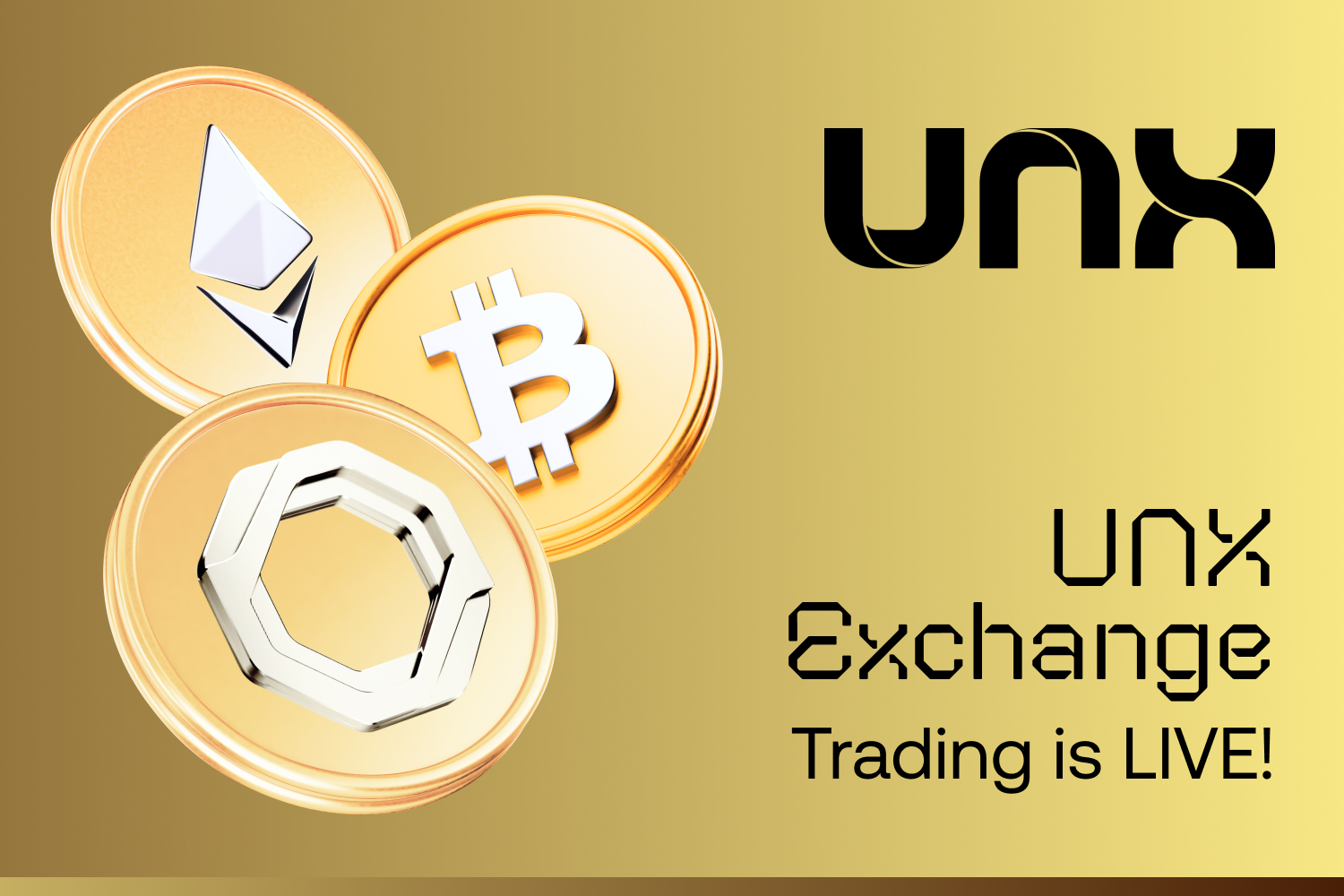 Ode dneška mohou uživatelé obchodovat s hlavními coiny, jako je Bitcoin nebo Ethereum, přičemž brzy budou zavedena další aktiva a pokročilé funkce. Toto spuštění burzy je začátkem revoluce v digitálních financích, která zahajuje éru špičkových výměnných funkcí. Burza UNX je novým zlatým standardem kryptoburz. S UNX neobchodujete jen s kryptoměnami. Utváříte budoucnost samotného obchodování.