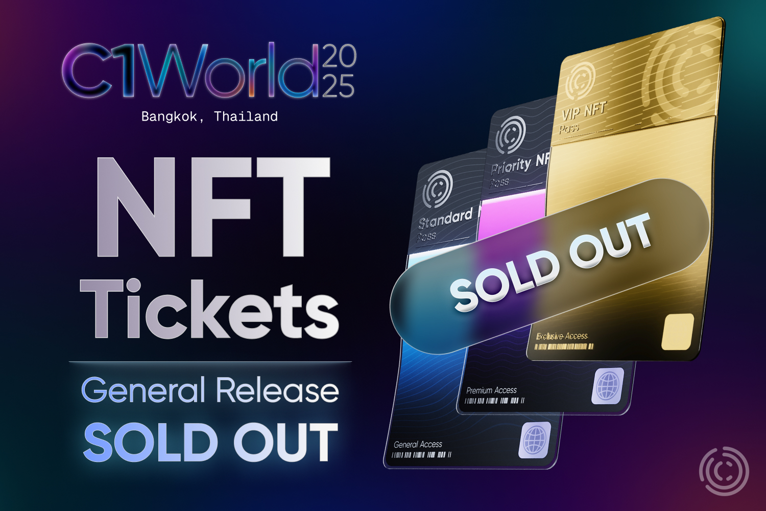 C1 World 2025 je tady! NFT pasy na C1 World 2025 jsou vyprodány. Celá komunita je nadšená z nadšení a my se nemůžeme dočkat, až tuto energii proměníme ve vaši dynamiku! Začneme hned u bran, protože vaše vstupenky nejsou jen přístupem. Jedná se o výkonné NFT nabité prémiovými výhodami a obchodními nástroji, které vám pomohou získat výhodu v oblasti energie C1 World 2025.