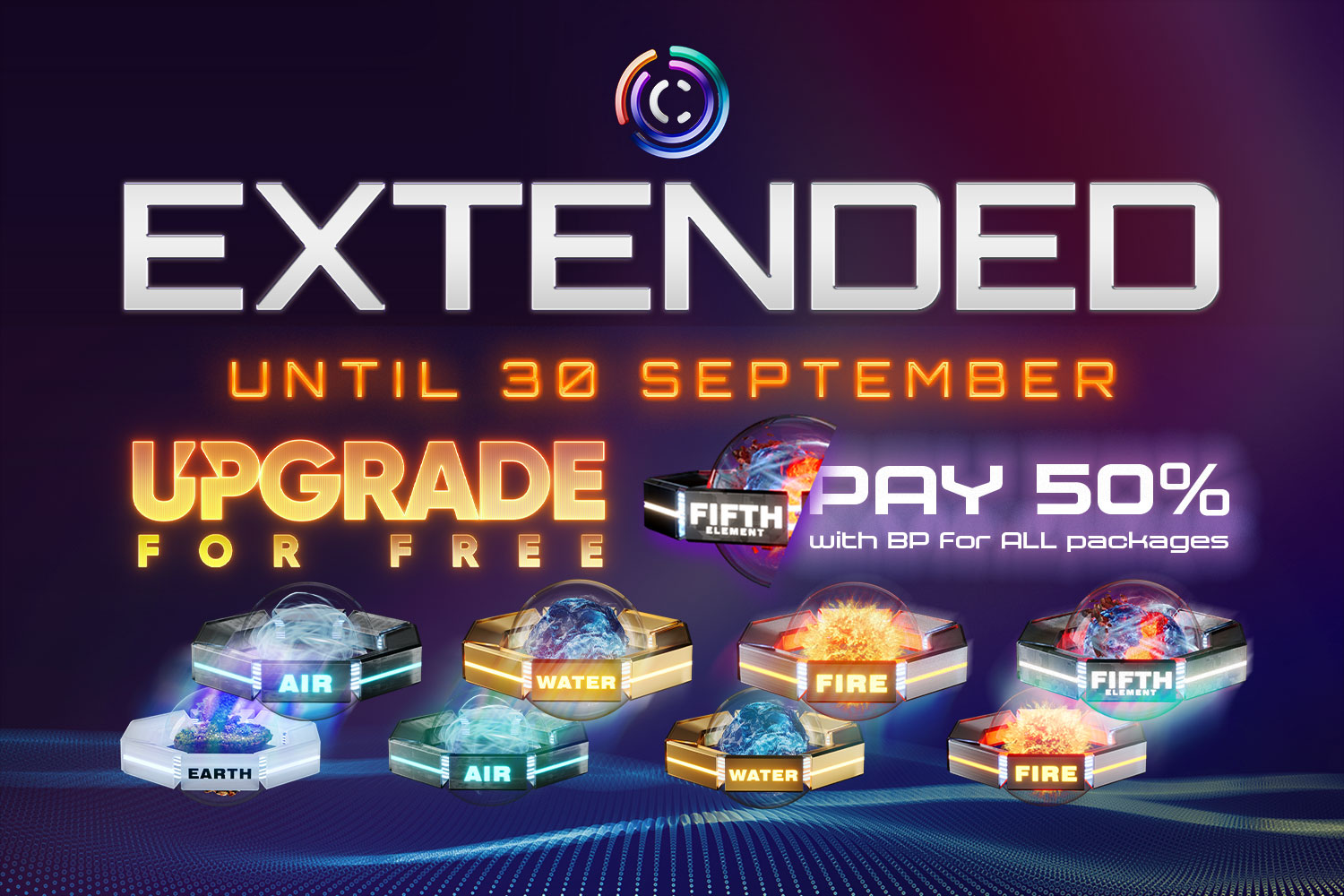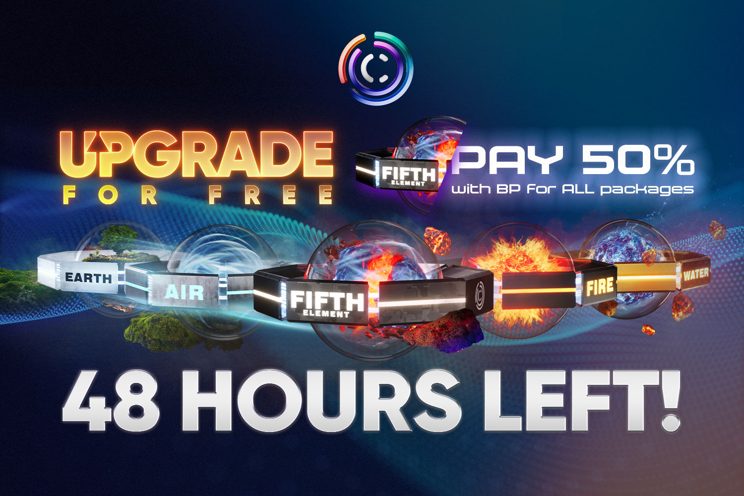 Upgrade zdarma je naše nejoblíbenější promo akce z dobrého důvodu: získejte bezplatný upgrade na vyšší úroveň, pokud si zakoupíte startovací balíček Elements jakékoli úrovně. Startovací balíček Elements je vaším klíčem k tokenu C1 a čím vyšší úroveň, tím lepší základnu tokenů získáte. Použijte UFF nyní, než za 48 hodin skončí. (Vezměte prosím na vědomí, že 50 % s BP nelze použít ve spojení s UFF.)