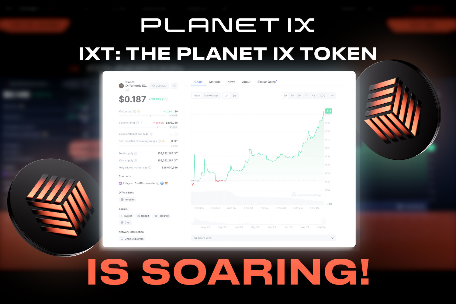 IXT, vlastní token Planet IX, vykazuje fantastický růst s více než 50% nárůstem za pouhý jeden den! To je síla DeFi!