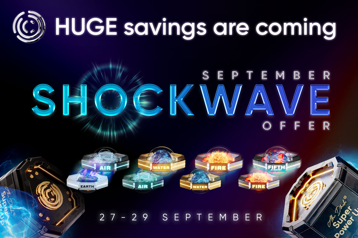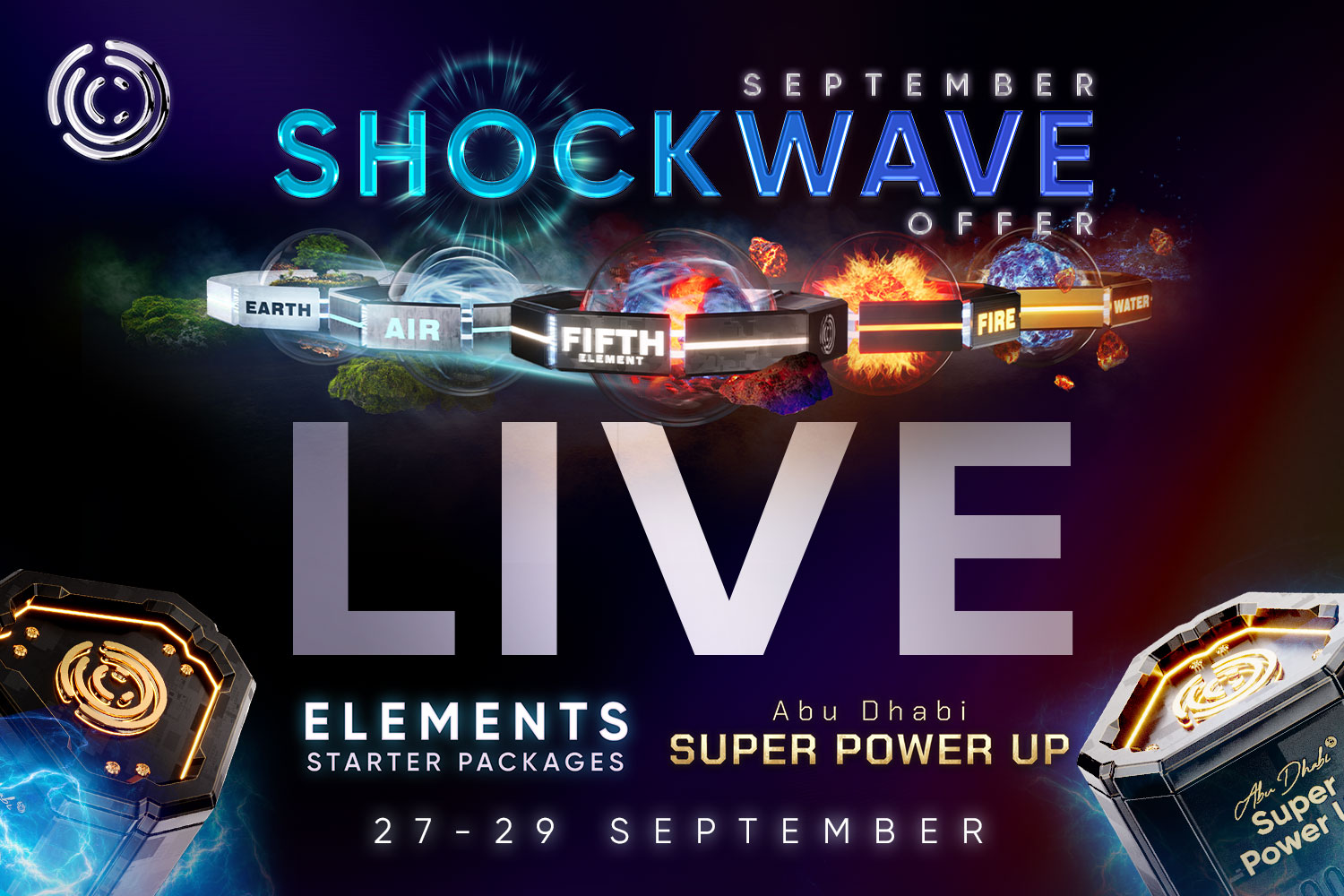 Zářijová nabídka Shockwave vám nabízí fantastickou 5% slevu na naše úžasné startovací balíčky Abu Dhabi Super Power Up a Elements. ADSPU je plný všech produktů, nástrojů a výhod, které potřebujete k povznesení svého podnikání, a startovací balíčky Elements jsou vaší vstupní branou k úspěchu v podobě tokenu C1.