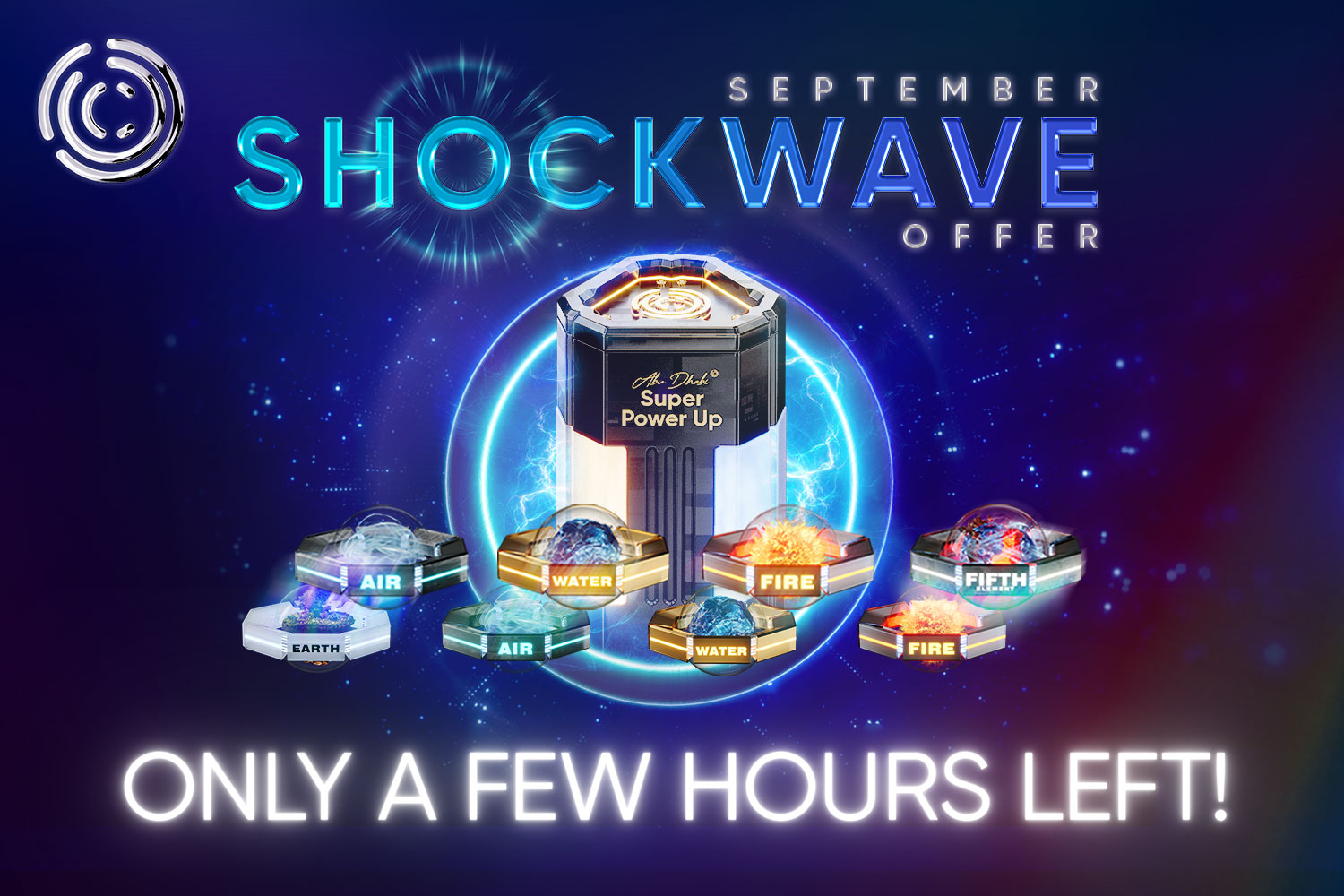 Zářijová hra Shockwave bude k dispozici do 29. září do 23:59 GST, takže čas běží! Se slevou 5 % na startovací balíčky Abu Dhabi Super Power Up a Elements máte šanci postoupit o úroveň výš a prosperovat. Upgrade zdarma je vám také stále k dispozici, což znamená, že vyšší úroveň startovního balíčku Elements je nyní dosažitelnější než kdy dříve!