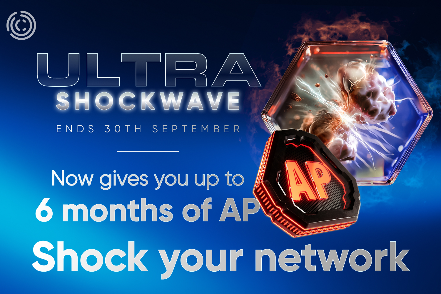 Ale nyní, pouze v příštích 3 dnech, naposledy šokujte svou síť neuvěřitelným bonusem Shockwave Bonus a využijte všechny ostatní výhody Ultra Shockwave – toto je vaše poslední šance získat tento mocný balíček nástrojů a bonusů. Máte pouze 72 hodin na to, abyste získali všechny výhody Wave 8: AP, BP, RP, Corebit tokeny a nezastavitelný Shockwave Bonus navrch.