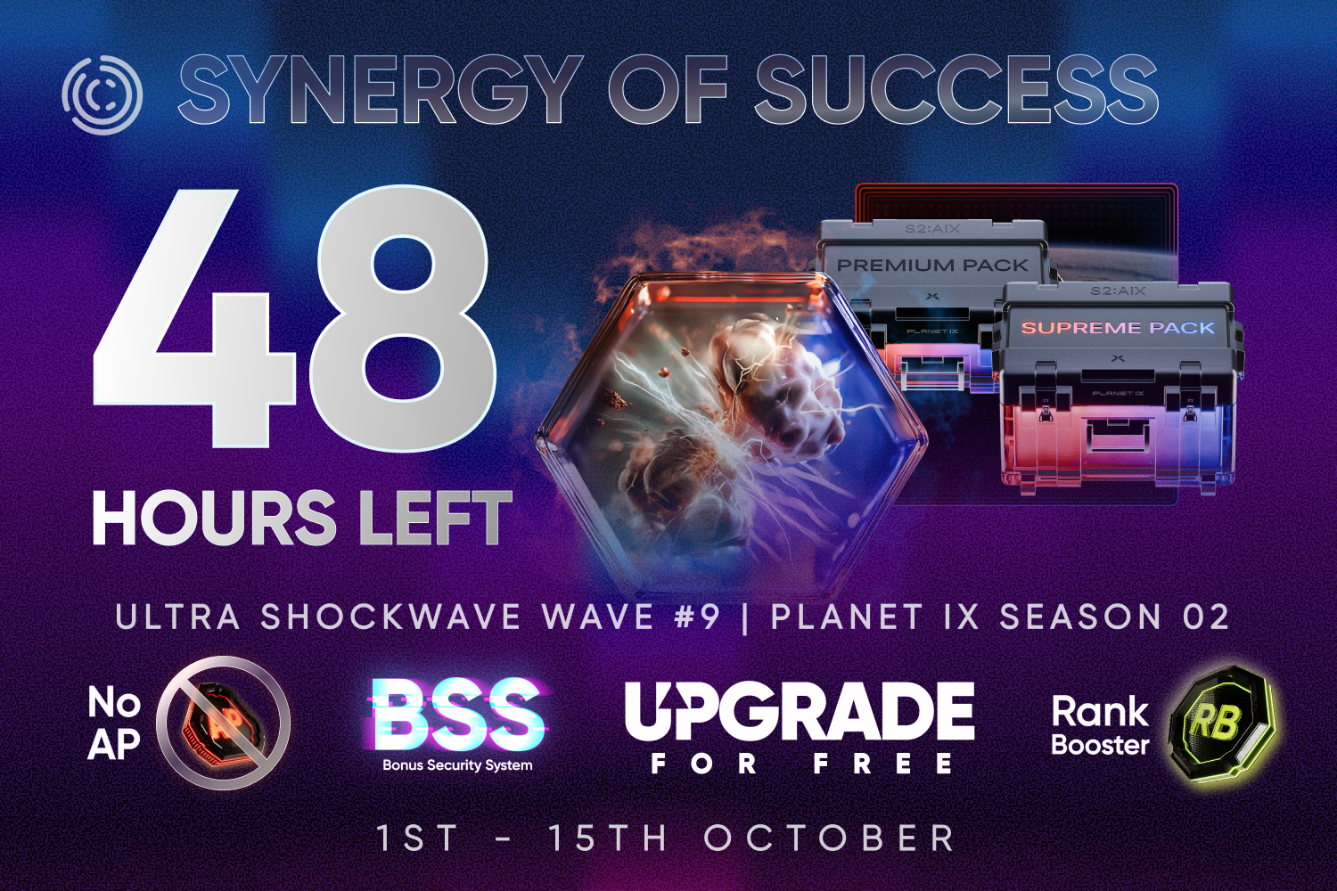 Předprodej na AIX se dostal o level výš! 2. sezóna Planet IX nastartuje váš úspěch ve hře Play-2-Earn s bonusovým fondem otevřených balíčků v hodnotě 1 000 000 €: za každých 5 000 € v balíčcích AIX získáte 1 000 € v bonusových odměnách, které platí do vyprodání zásob. Získejte náskok ve 2. sezóně Planet IX s kredity AI, umělými jádry, výsadkovými body a získejte více síly a větší růst s exkluzivním bonusem Super AIX. Obě promo akce jsou dostupné do 15. října, 23:59 GST! Nenechte si ujít tuto poslední šanci šokovat svou síť a začít sezónu s nezastavitelným elánem.