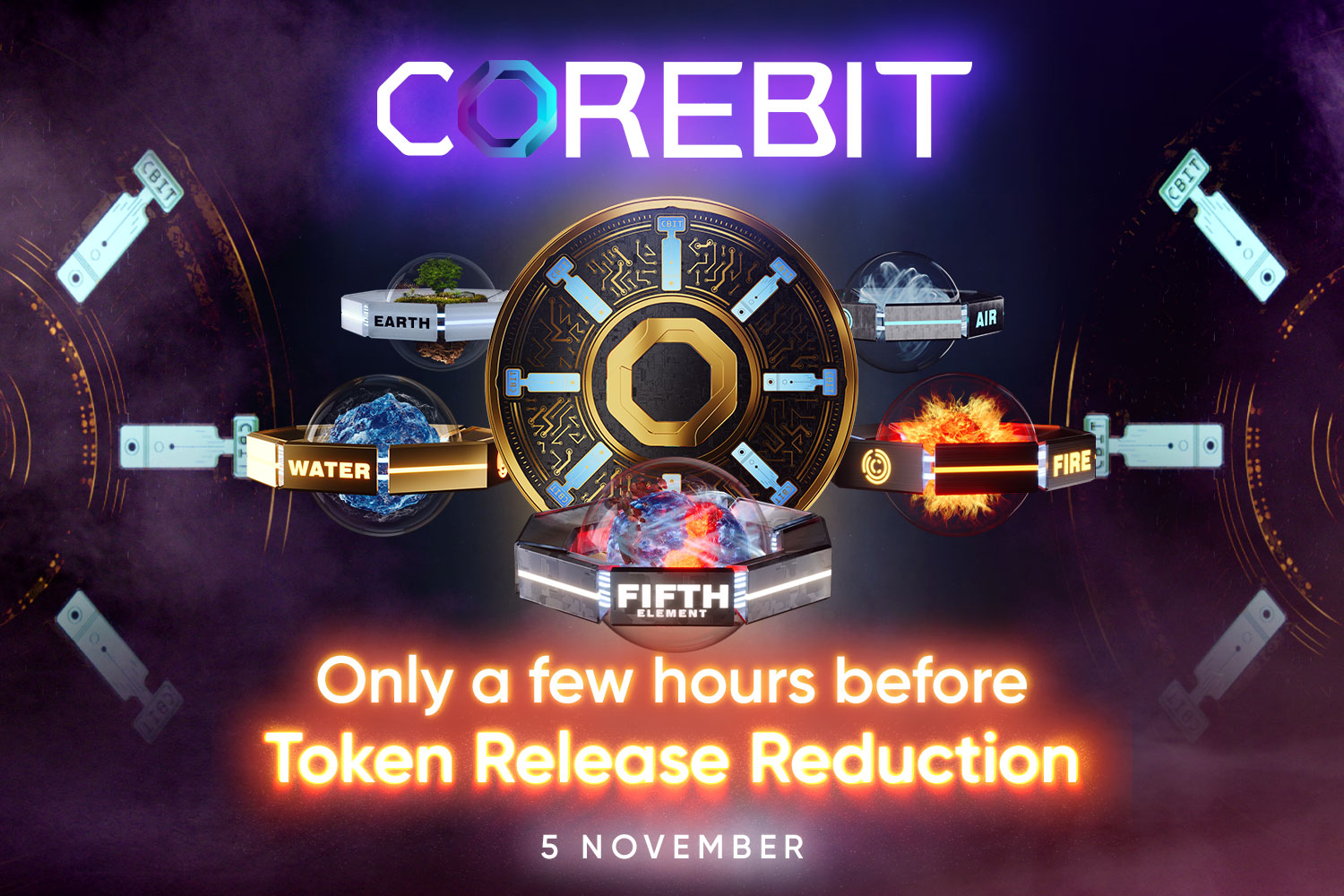 Zbývá jen několik hodin, než vstoupí v platnost snížení o uvolnění tokenu. Dne 5. listopadu dojde ke snížení podílů společnosti Corebit ve všech startovacích balíčcích Elements. Pokud chcete držet maximální počet tokenů Corebit za aktuální kurz, ujistěte se, že vlastníte startovací balíček Elements nejvyšší úrovně před 5. listopadem.