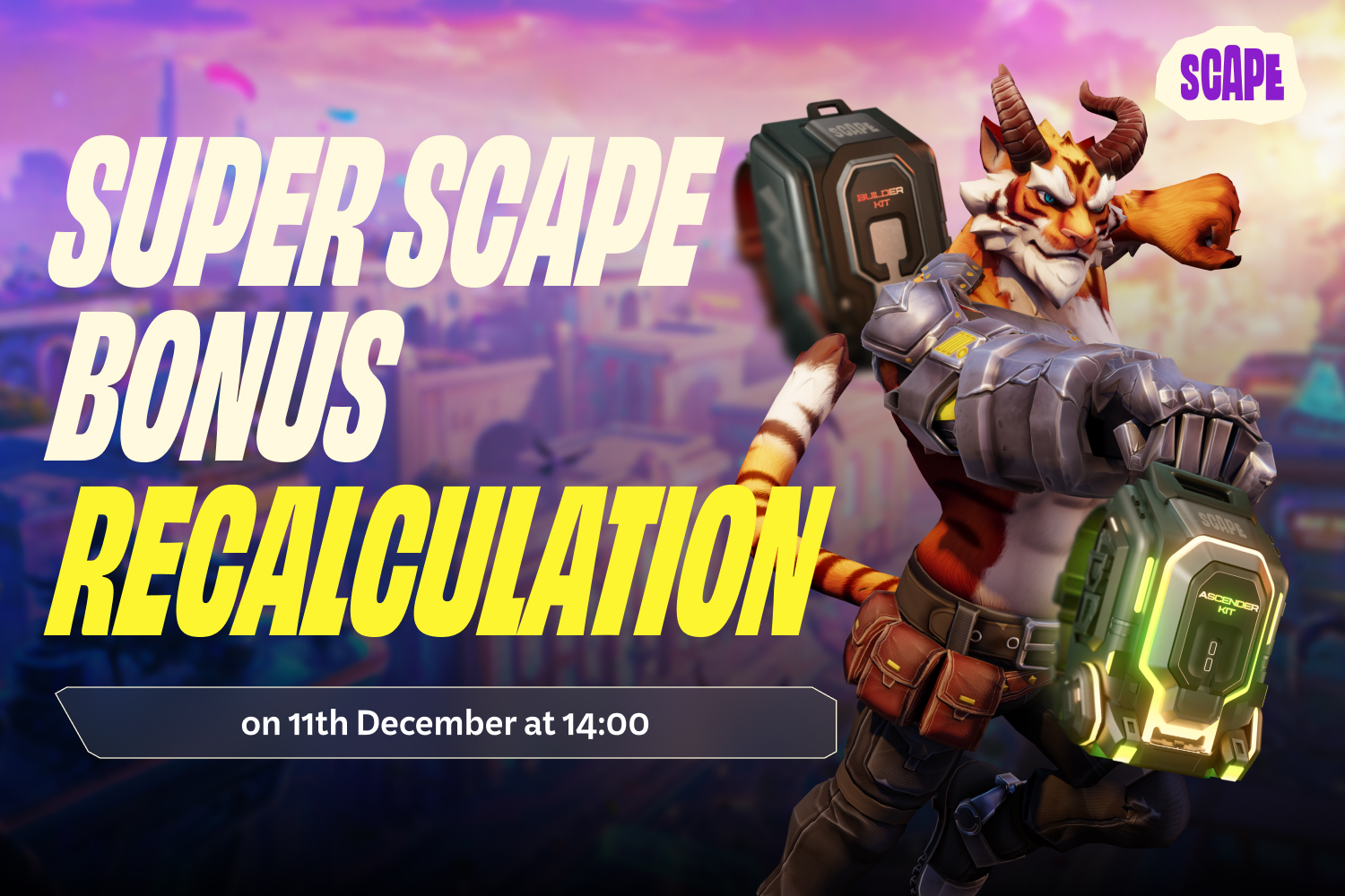 Zítra je den přepočítání pro Scape! Za 24 hodin systém naposledy zkontroluje všechny vaše aktivované Scape sady a započítá váš pokrok. Pamatujte, že váš bonus Super Scape škáluje s hybností, kterou jste si vybudovali.