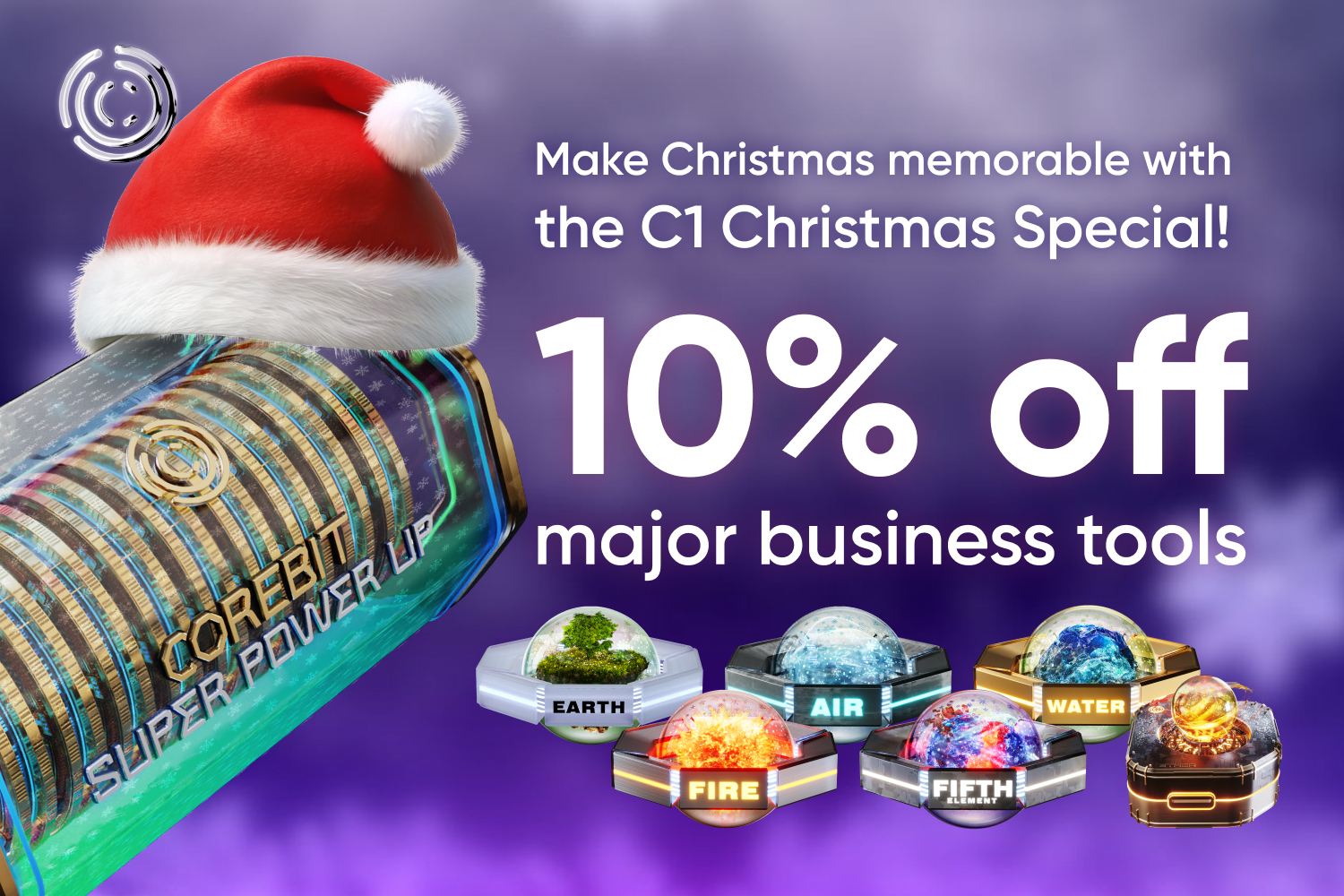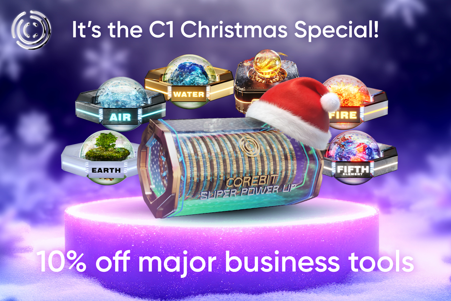 C1 je číslo jedna v oboru z nějakého důvodu: poskytujeme vám maximální výkon ve světě Web3. Úžasný vánoční speciál C1 přináší kouzlo dávání – a dává vám ten nejlepší dárek vůbec: soběstačné podnikání Web3. Vánoční speciál C1 je k dispozici do 27. prosince do 18:00 GST. Čas je omezený, takže si ho nenechte ujít a získejte 10% slevu na všechny startovací balíčky Elements A 10% slevu na Corebit Super Power Up. Veselé vánoce!