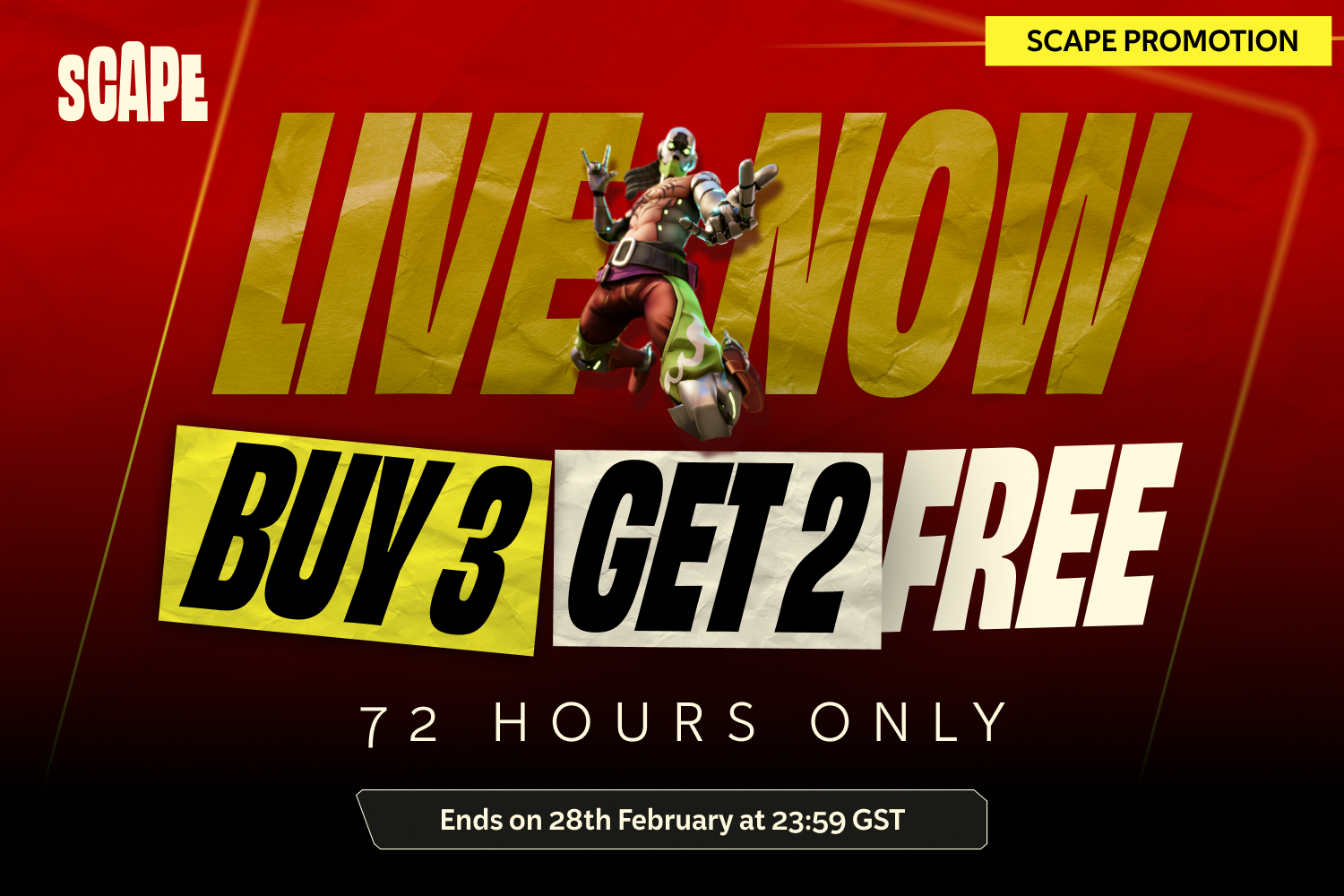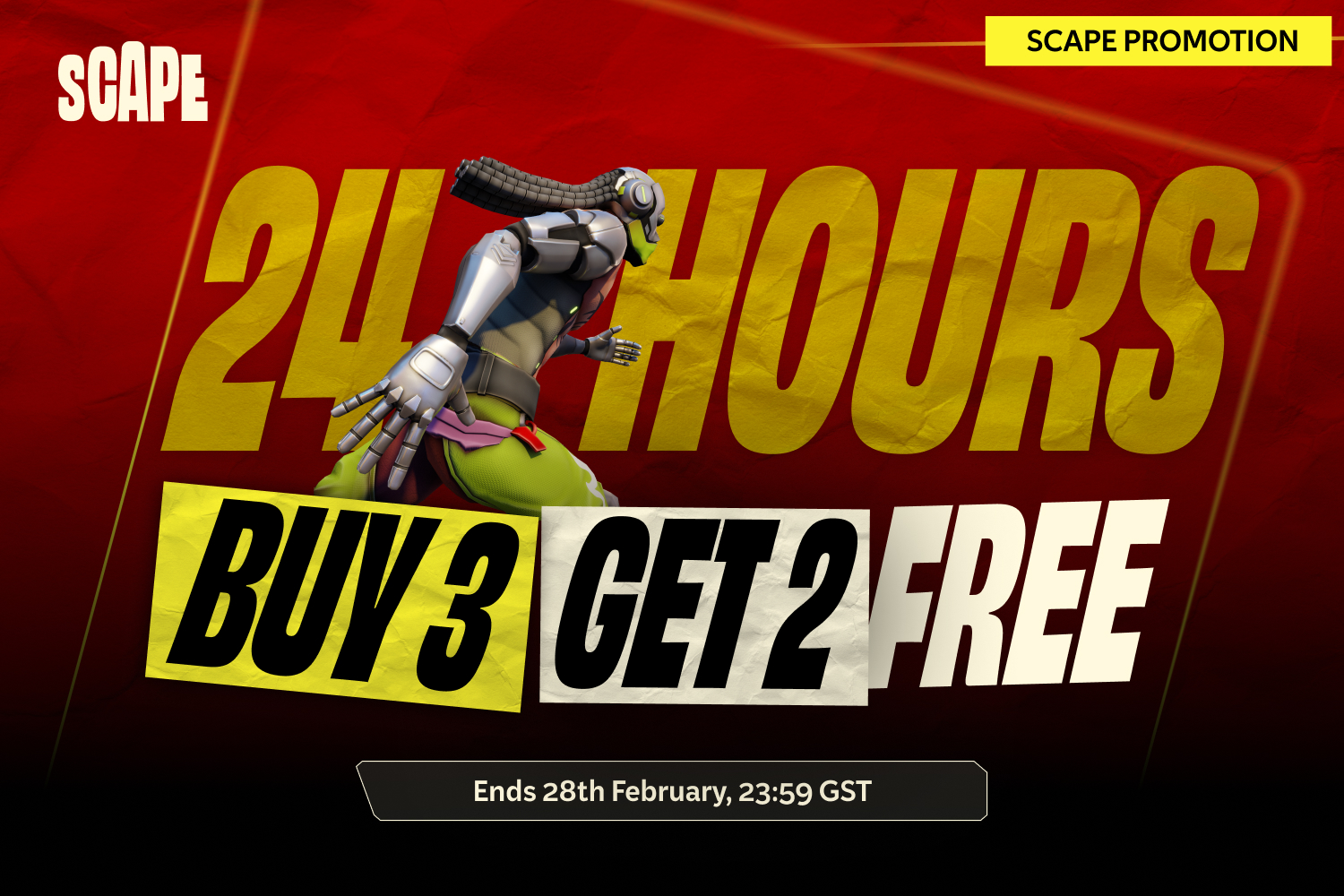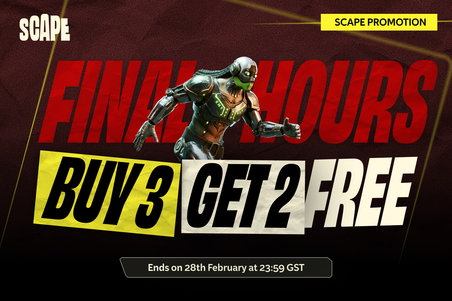 72hodinový multiplikátor Scape je ve své závěrečné fázi. Tato zásadní akce končí dnes v 23:59 GST. Ještě pár hodin můžete aktivovat výhodu 3+2: koupit libovolné 3 Scape Kity a získat 2 další Scape Kity zcela zdarma. Čistá páková hra stlačená do úzkého okna. Členové, kteří se pohybují v posledních hodinách, jsou ti, kteří rozumí načasování. Uzamkněte si výhody na vyšší úrovni dříve, než se okno příležitosti uzavře. Únor dnes končí, ujistěte se, že ho zakončíte ve velkém stylu – teď je váš okamžik jednat.